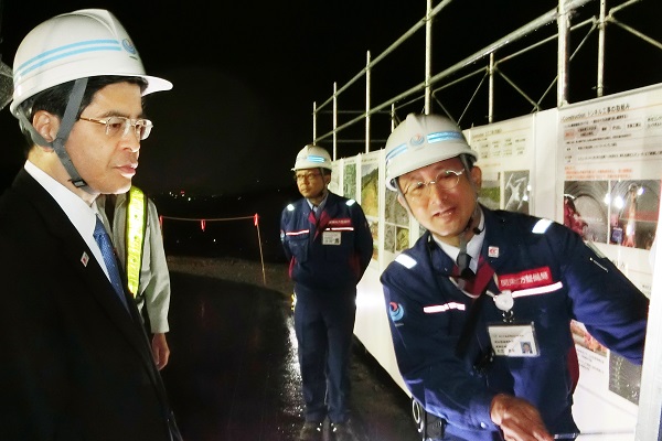 厚木秦野道路及び新東名高速道路の整備状況について説明を受ける石井大臣