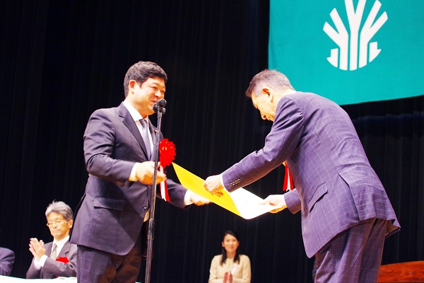 田中政務官は、都市の緑を次の世代に残すことが私たちの大きな責務であり、緑を守り育てる活動に期待を寄せている旨、祝辞を述べるとともに、緑豊かな都市づくりについて功績が認められた大臣表彰受賞者等の皆様に賞状を授与しました。