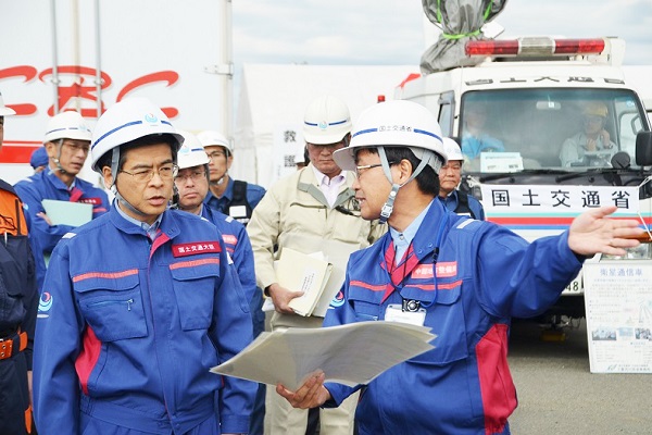 訓練では、南海トラフ巨大地震を想定し、企業と行政など関係機関が連携し、避難の呼びかけや被災者の救命・救出活動、TEC-FORCEによる緊急排水や道路・航路啓開、コンビナート火災を想定した訓練など、陸海空において総合的な実動訓練を実施しました。