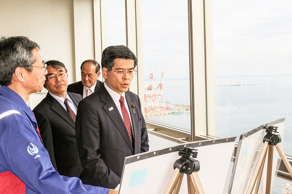四日市港を視察する石井大臣