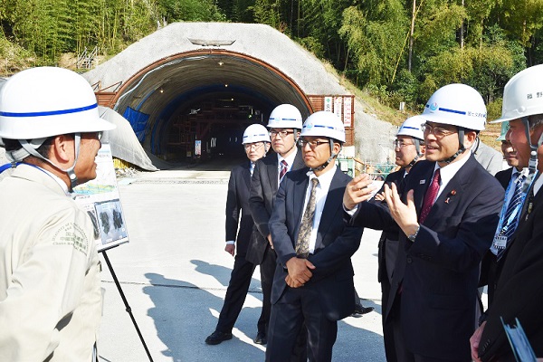 中勢道路を視察する石井大臣