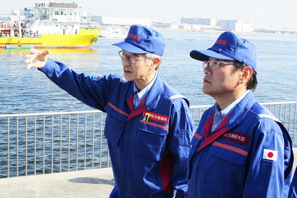 11月5日の「世界津波の日」「津波防災の日」に、大阪府堺市の堺2区基幹的広域防災拠点で実施した「平成30年度近畿地方整備局・堺市合同総合防災訓練」に、大塚副大臣が参加しました。