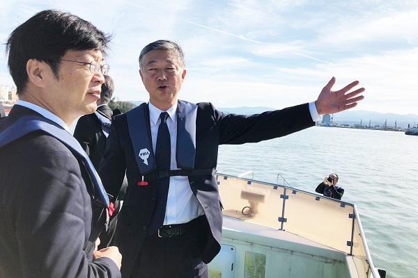 金沢港にて整備状況の説明を受ける阿達政務官