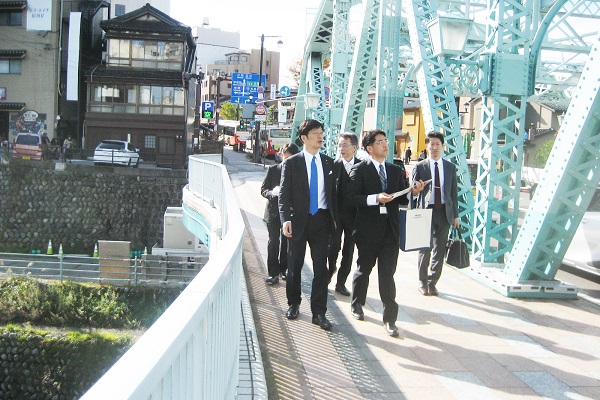 国道157号犀川大橋の補修工事などの説明を受ける阿達政務官