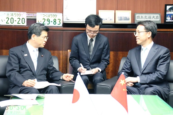 平成30年11月26日(月)、石井大臣は、中華人民共和国 張暁明(チョウ・ギョウメイ)国務院香港マカオ事務弁公室主任の表敬訪問を受け、港湾間の広域連携等について幅広く意見交換を行うとともに、今後の港湾分野における両国の協力関係を更に深めていくことを確認しました。