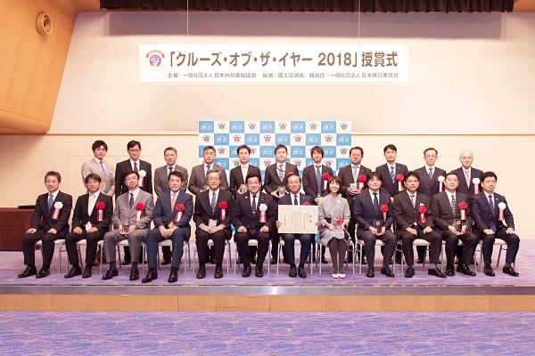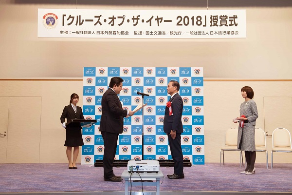 塚田副大臣は、授賞式において、「飛鳥2)2018年世界一周クルーズ」を企画した郵船クルーズ(株)に初となる国土交通大臣賞を授与しました。