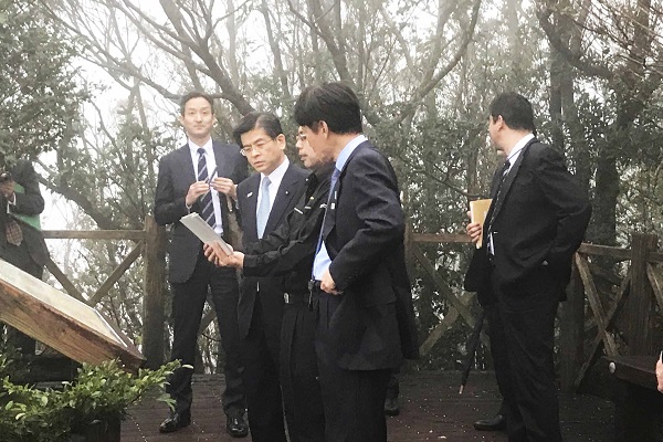 奄美自然観察の森の整備状況及び奄美の自然環境について説明を受ける石井大臣