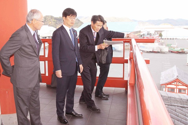 伊保田港について説明を受ける阿達政務官