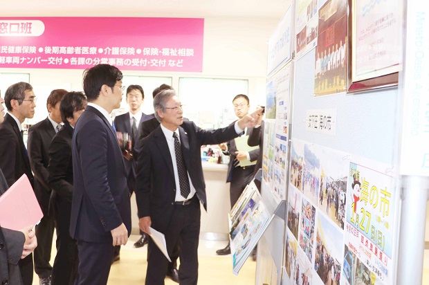 みなとオアシス安下庄について説明を受ける阿達政務官