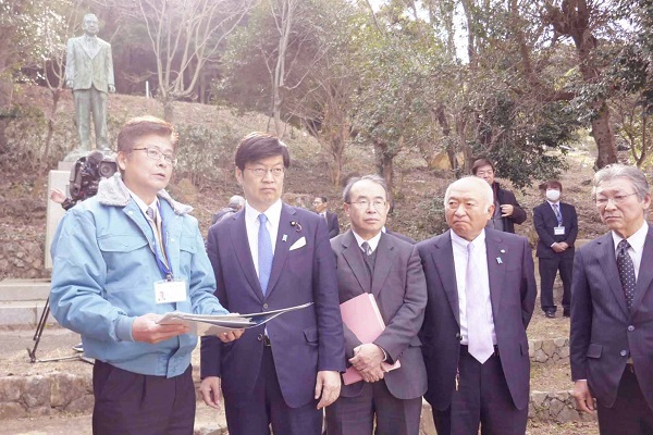 片添ヶ浜海浜公園について説明を受ける阿達政務官