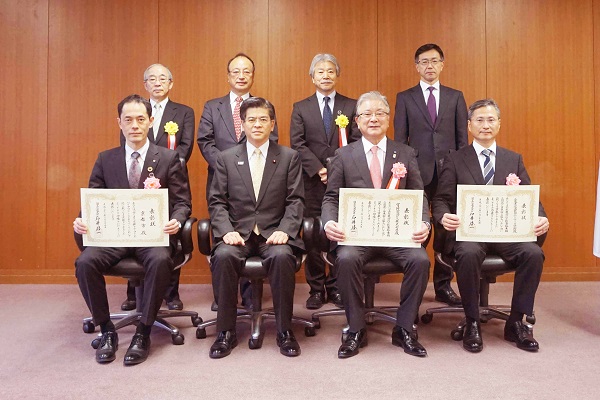 大臣表彰受賞者に表彰状を手渡した後、受賞者の皆様と記念撮影を行いました。