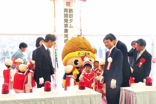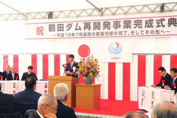 工藤政務官は式典で、「鶴田ダム再開発事業の完成により、流域の安全・安心の向上と社会基盤の安定に大いに貢献するとともに、鶴田ダムを地域資源の一つととらえた観光振興にも大いに寄与するものと期待している。」と挨拶しました。