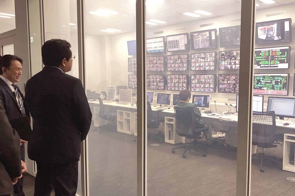24時間体制の集中管理室について説明を受ける塚田副大臣