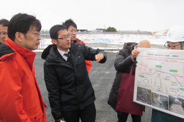 日本海沿岸東北自動車道(酒田みなとIC)の整備状況を視察する阿達政務官