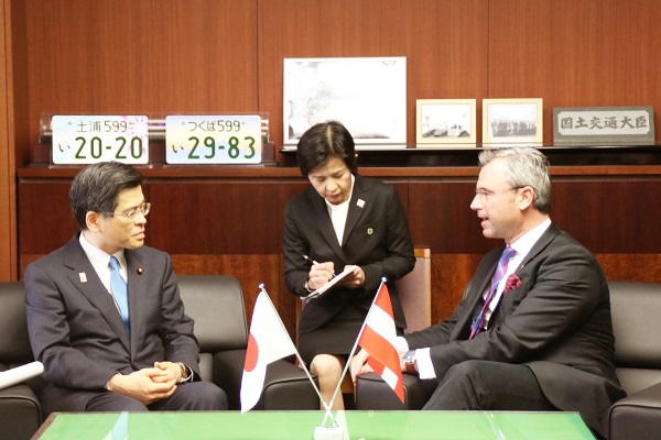 平成31年2月15日に、石井大臣、田中政務官が、オーストリア共和国ノルベルト・ホーファー交通・イノベーション・技術大臣の表敬訪問を受けました。