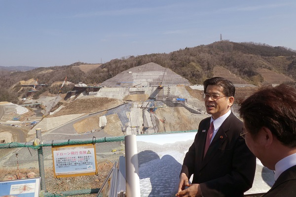 安威川ダムの事業進捗状況について説明を受ける石井大臣