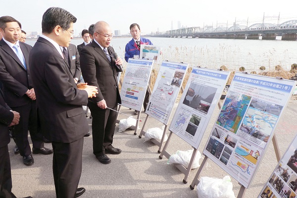 阪神なんば線淀川橋梁かさ上げ工事の進捗状況について説明を受ける石井大臣