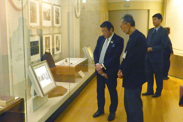 昭和天皇記念館で昭和天皇ゆかりの展示品を視察する大塚副大臣
