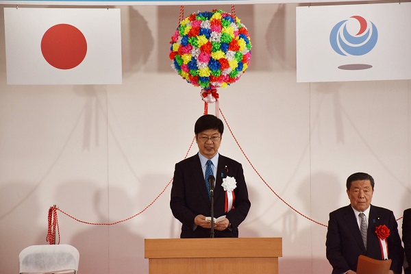阿達政務官は、挨拶のなかで「クルーズ船受け入れ機能が強化されることにより、ここ鹿児島港が、我が国のクルーズの発展を力強くリードすることを期待しております。」と述べました。