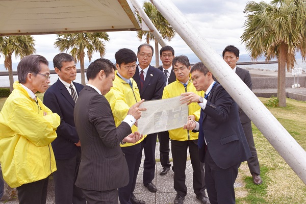 また、着工式の出席にあわせて、鹿児島港及び道の駅いぶすき、指宿港海岸を視察しました。