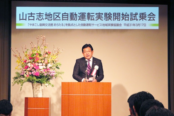 【平成31年3月17日】 やまこし復興交流館おらたるを拠点とした自動運転サービス実験開始試乗会に塚田副大臣が出席