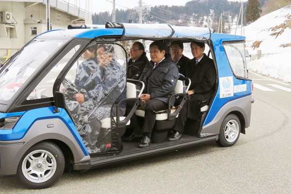 3月17日に、塚田副大臣は新潟県長岡市を訪れ、やまこし復興交流館おらたるを拠点とした自動運転サービス実験開始試乗会に出席しました。