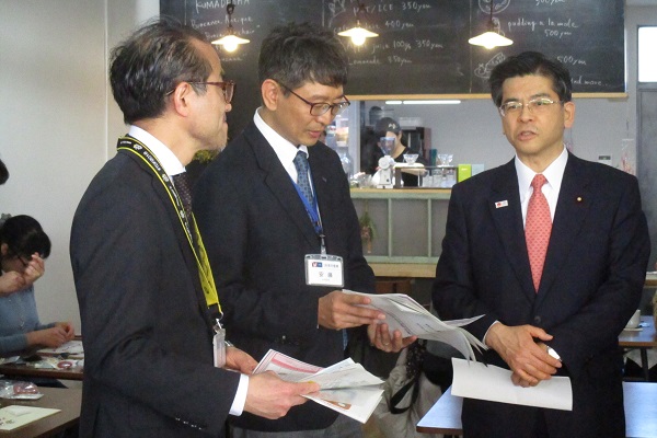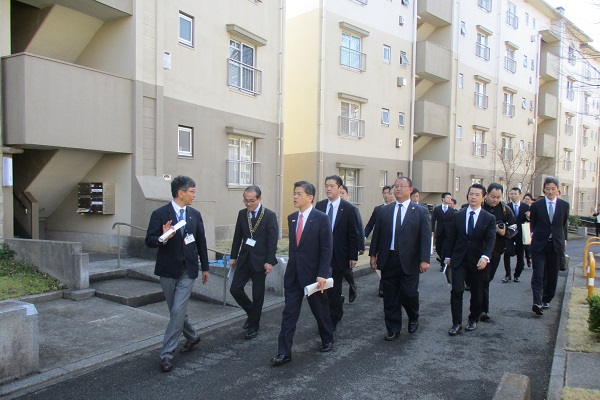 団地内施設を活用したコミュニティ施設を視察する石井大臣