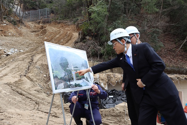 3月24日、石井大臣は、広島県呉市を訪れ、平成30年7月豪雨災害からの復旧・復興状況を視察しました。