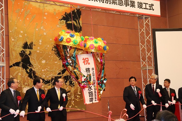 3月23日(土)、塚田副大臣は、新潟県長岡市で開催された柿川放水路床上浸水対策特別緊急事業竣工式に出席しました。
