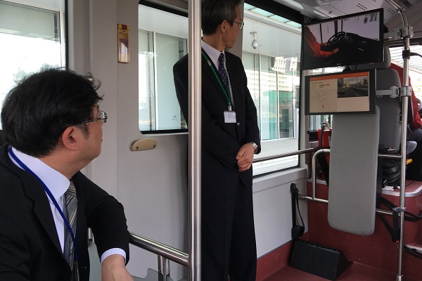 自動走行実証実験の概要について説明を受ける工藤政務官