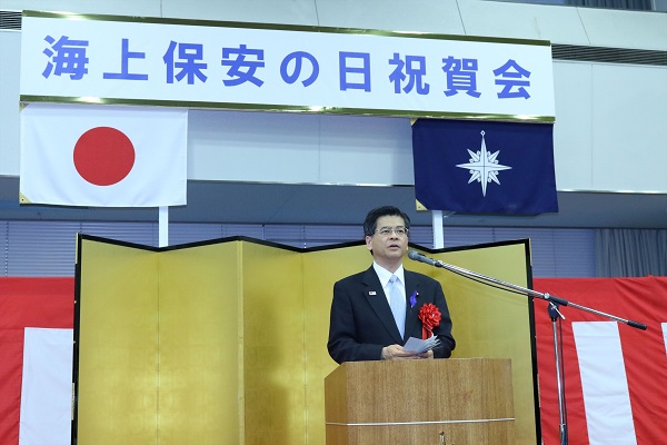 石井大臣は、挨拶のなかで、「最新鋭の装備と、70年に亘り脈々と受け継がれてきた「正義仁愛」の精神をもって、令和という新しい時代においても海の守りに万全を期してほしい」と述べました。