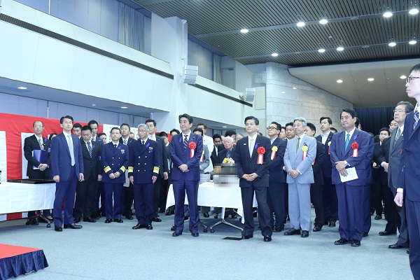 5月14日、石井大臣は、安倍内閣総理大臣等の列席のもと、「海上保安の日祝賀会」に出席しました。