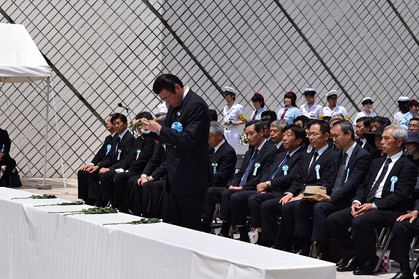 大塚副大臣は、安倍晋三内閣総理大臣から賜った追悼の辞を代読し、戦没・殉職船員の方々に敬意と感謝の念を表しました。