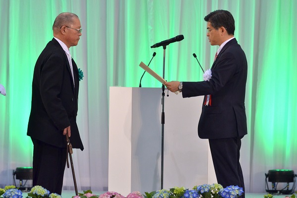 表彰状を授与する石井大臣