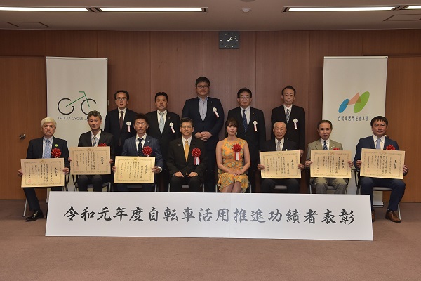 5月20日に「令和元年度自転車活用推進功績者表彰式」を開催し、自転車の活用の推進に貢献された受賞者(個人2名、団体4名)へ表彰状を授与しました。