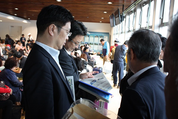 比田勝港の利用状況ついて説明を受ける阿達政務官