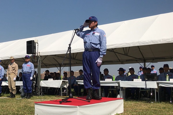 水防団を激励する大塚副大臣