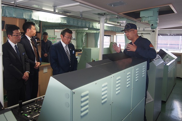 巡視船内を視察する大塚副大臣