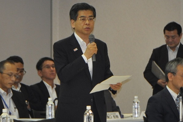 石井大臣は、挨拶の中で、「災害に強い社会を築くには、これまでの経験から得た教訓を、社会全体で共有する取り組みを継続していくことが重要です。大きな水害を経験され、高い防災意識をお持ちである本日お集まりの皆様方に、全国をリードするような御議論を頂き、全国へ発信して頂くとともに、国土交通省としてもそれらをしっかりと受け止め、社会全体で洪水に備える「水防災意識社会」の再構築につなげていきたい。」と述べました。