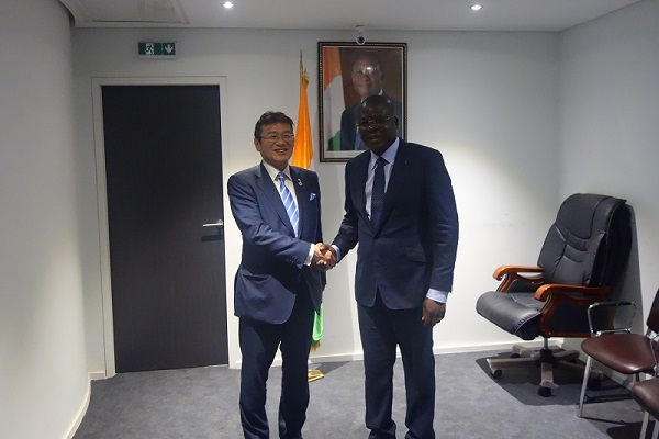コートジボワール共和国においては、両国の民間企業が参加する「質の高いインフラビジネスマッチングセミナー」に出席するとともに、アメデ・コフィ・クアク設備・道路整備大臣、アマドゥ・コネ運輸大臣をはじめとする先方政府閣僚との会談を通じ、コートジボワールにおける「質の高いインフラ投資」推進に向けて貢献していくことを表明しました。