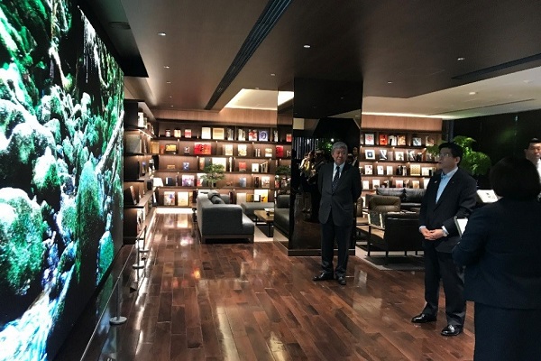 凸版印刷NIPPON GALLERY TABIDO MARUNOUCHIでは、高精細LEDウォールによる鮮明な日本の風景を投影する設備等を視察しました。