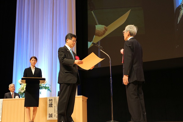 感謝状を授与する石井大臣