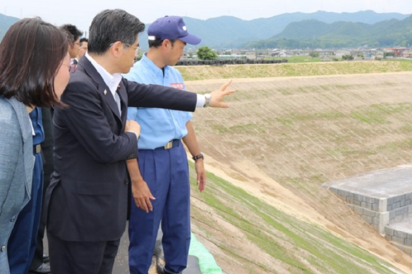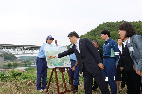【令和元年6月29日】 岡山県内の豪雨災害からの復旧・復興状況を石井大臣が視察