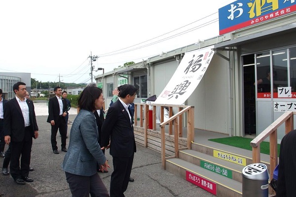 マービーふれあいセンターの被災状況及び復興商店街を視察する石井大臣