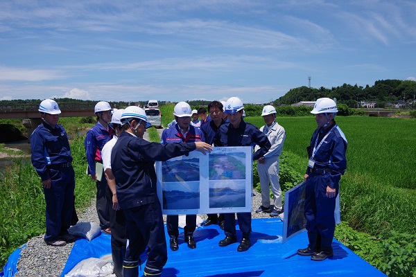 大里川の応急復旧状況を視察する大塚副大臣