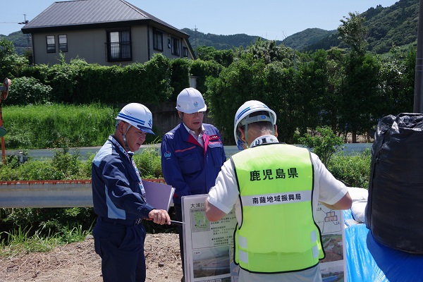 7月26日から27日に、大塚副大臣は、鹿児島県において、6月下旬からの大雨により、大きな被害が発生した河川・道路などの公共土木施設や主要事業を視察しました。