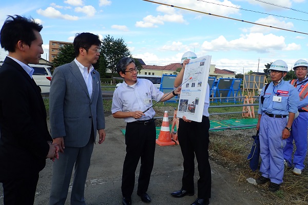 那須塩原市道新南下中野線の整備状況について説明を受ける阿達政務官