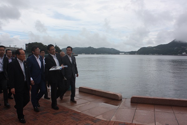 佐世保市では、佐世保港三浦地区の佐世保港国際ターミナルの利用状況や浦頭地区国際クルーズ拠点整備事業の整備状況を視察しました。
