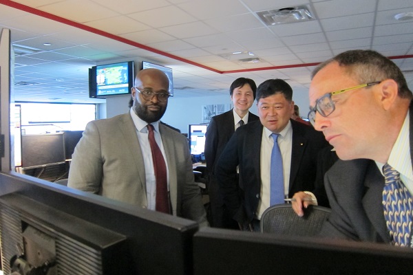 ダラス空港でアメリカン航空の施設(コントロールセンター)を視察する田中政務官