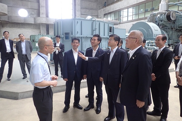 埼玉県三郷市の三郷排水機場の維持・管理状況について説明を受ける石井大臣